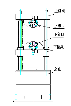 下橫梁升降電機經(jīng)減速器、鏈傳動機構(gòu)、絲杠副傳動,實現(xiàn)拉伸、壓縮空間的調(diào)整;注:絲杠不動,螺母旋轉(zhuǎn),確保設(shè)置在運轉(zhuǎn)中的幾何精度